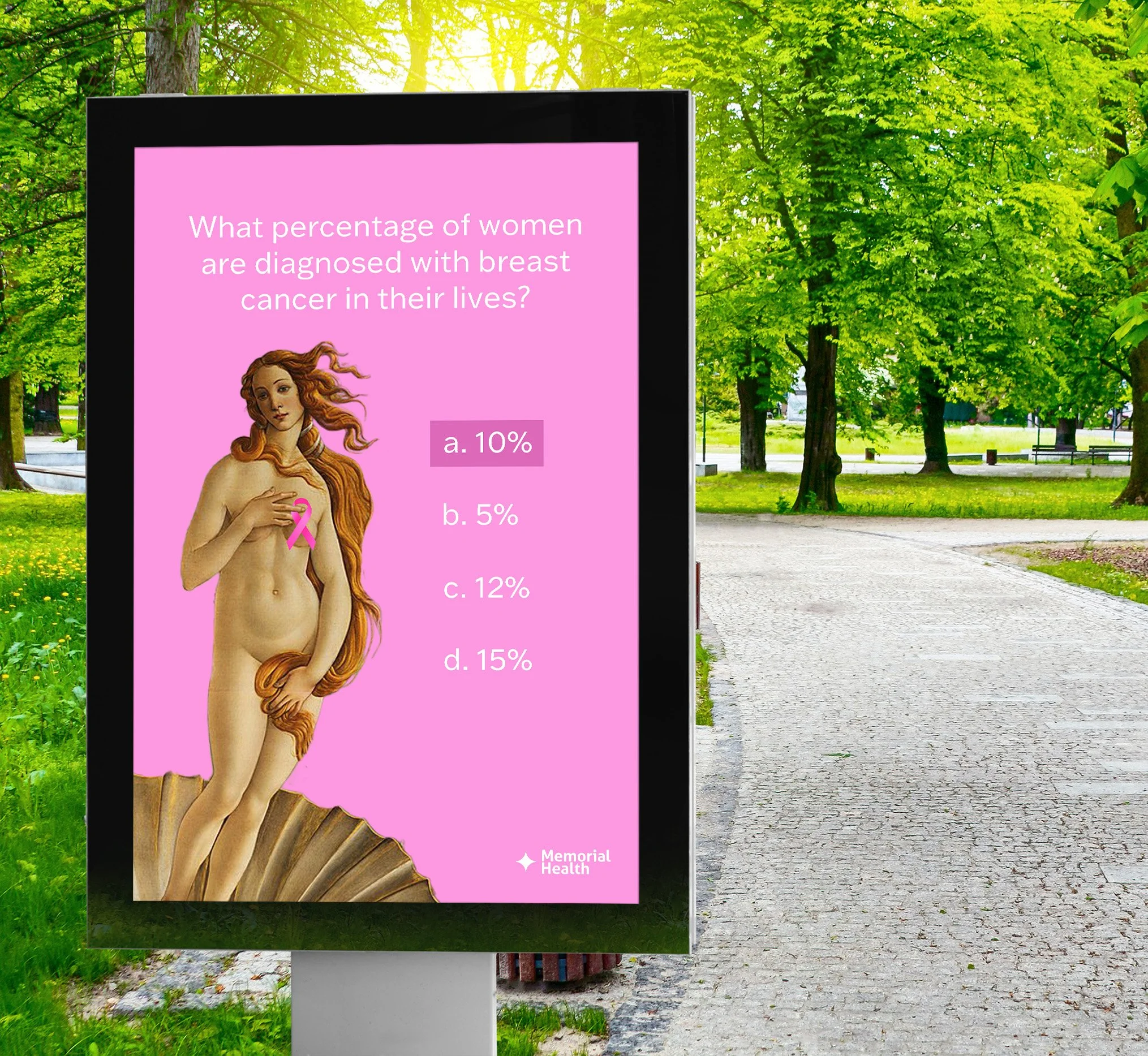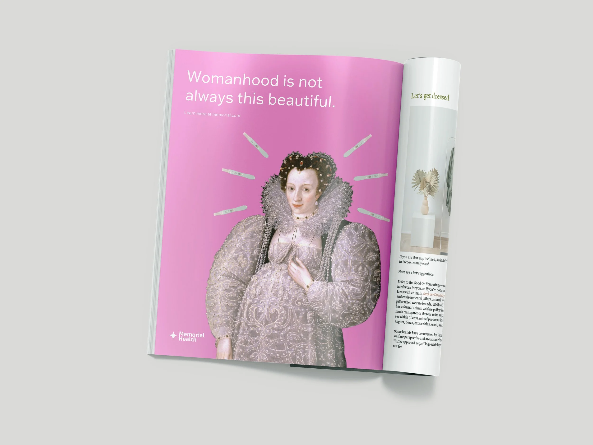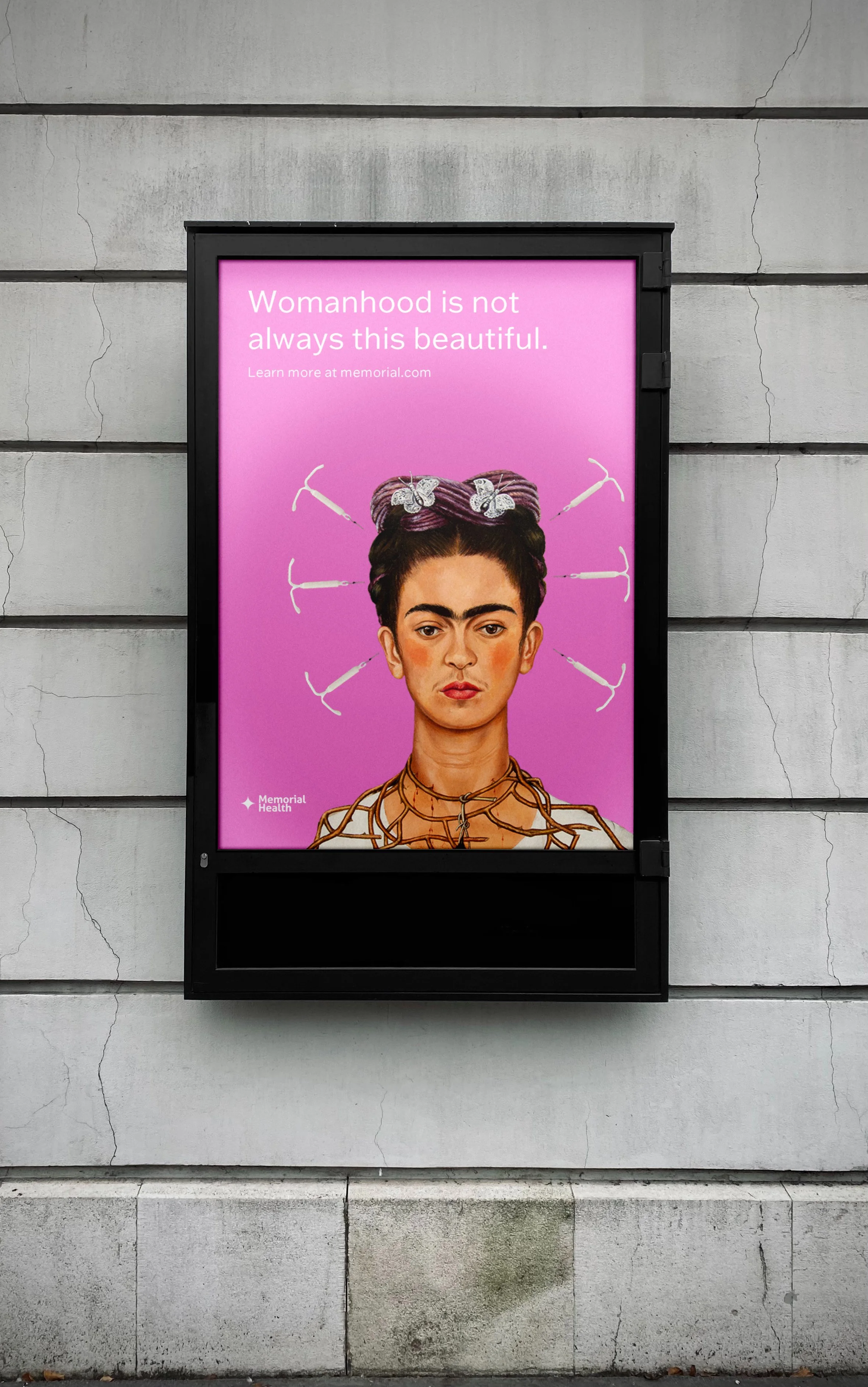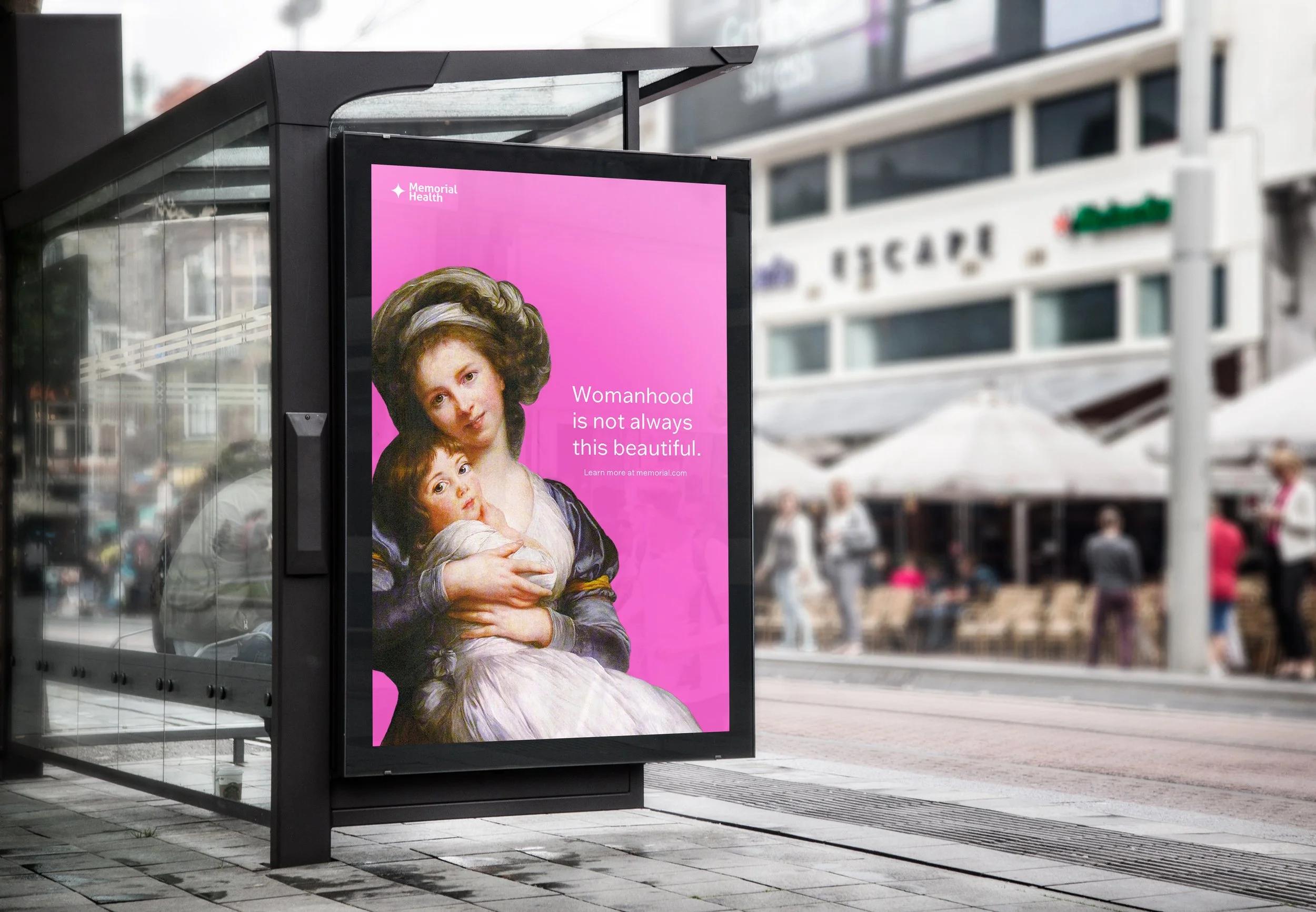 Memorial Healthcare Women's Care Campaign ads are a set of out of home campaigns, print, and digital overlays focused on the glamorization on women's health through art history. The reality being that being a woman, and dealing with healthcare as a woman is not always as beautiful. The digital overlays bring traction to Memorial Health and also address the experience of healthcare. The digital overlays consist of a proposed podcast, accessible through QR codes in waiting rooms, created by professionals at memorial to ease healthcare anxieties for women. As well as an interactive quiz game, located around Savannah, for people to interact with and learn more about Women's health.