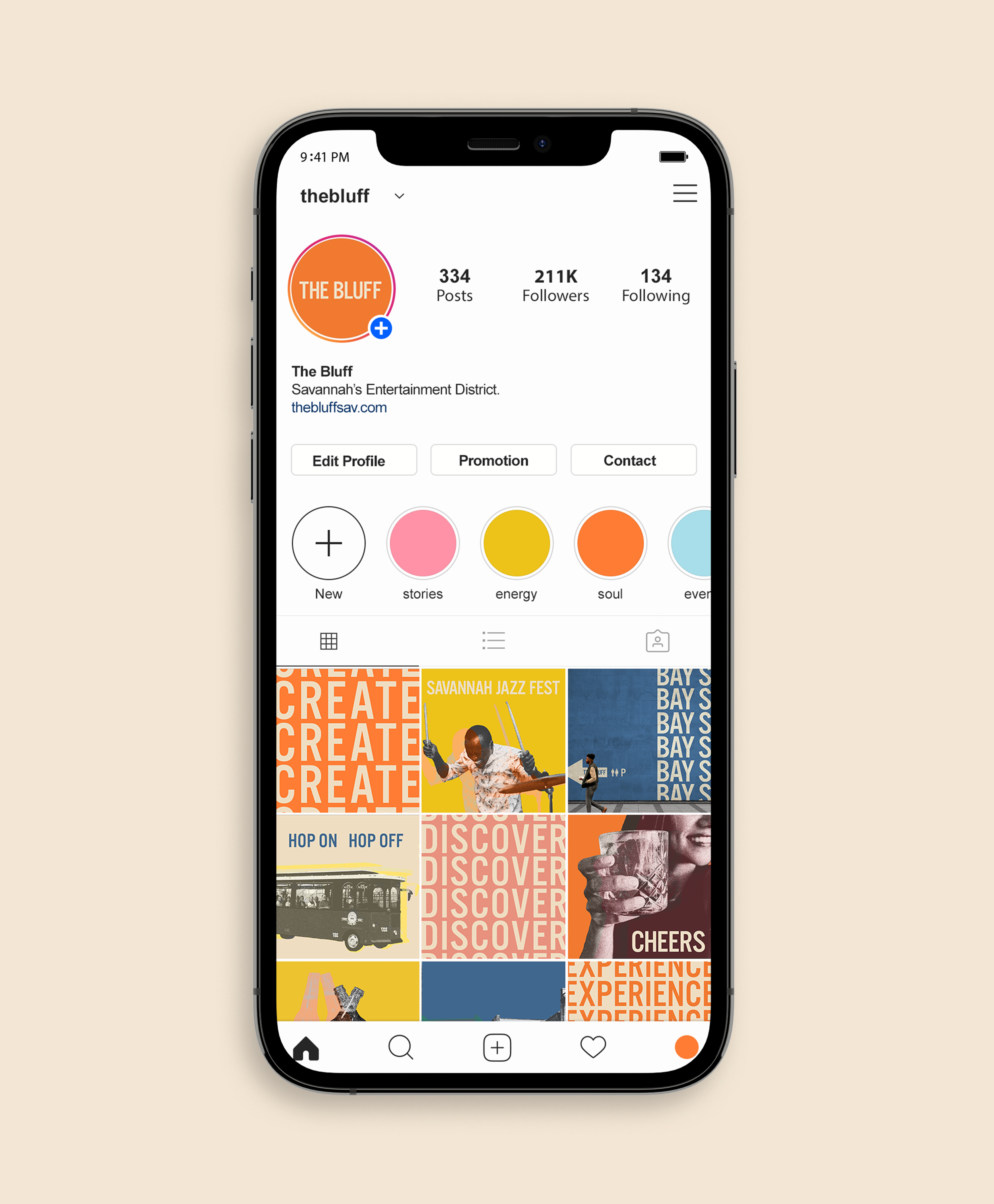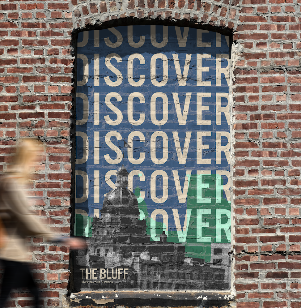 The Bluff is a conceptual plan for the visual identity and branding of an entertainment district in Savannah, Georgia. Savannah, Georgia is a city full of lush history, beautiful scenery, and live night life, the Bluff is a cumulation of Savannah's many wonders and industries. The Bluff spread out on Savannah's riverfront, stretching from River Street to Broughton Street; a scenic and historic location. The Bluff gives energy back to Savannah and emphasizes its best qualities: soul, history, stories, and energy.